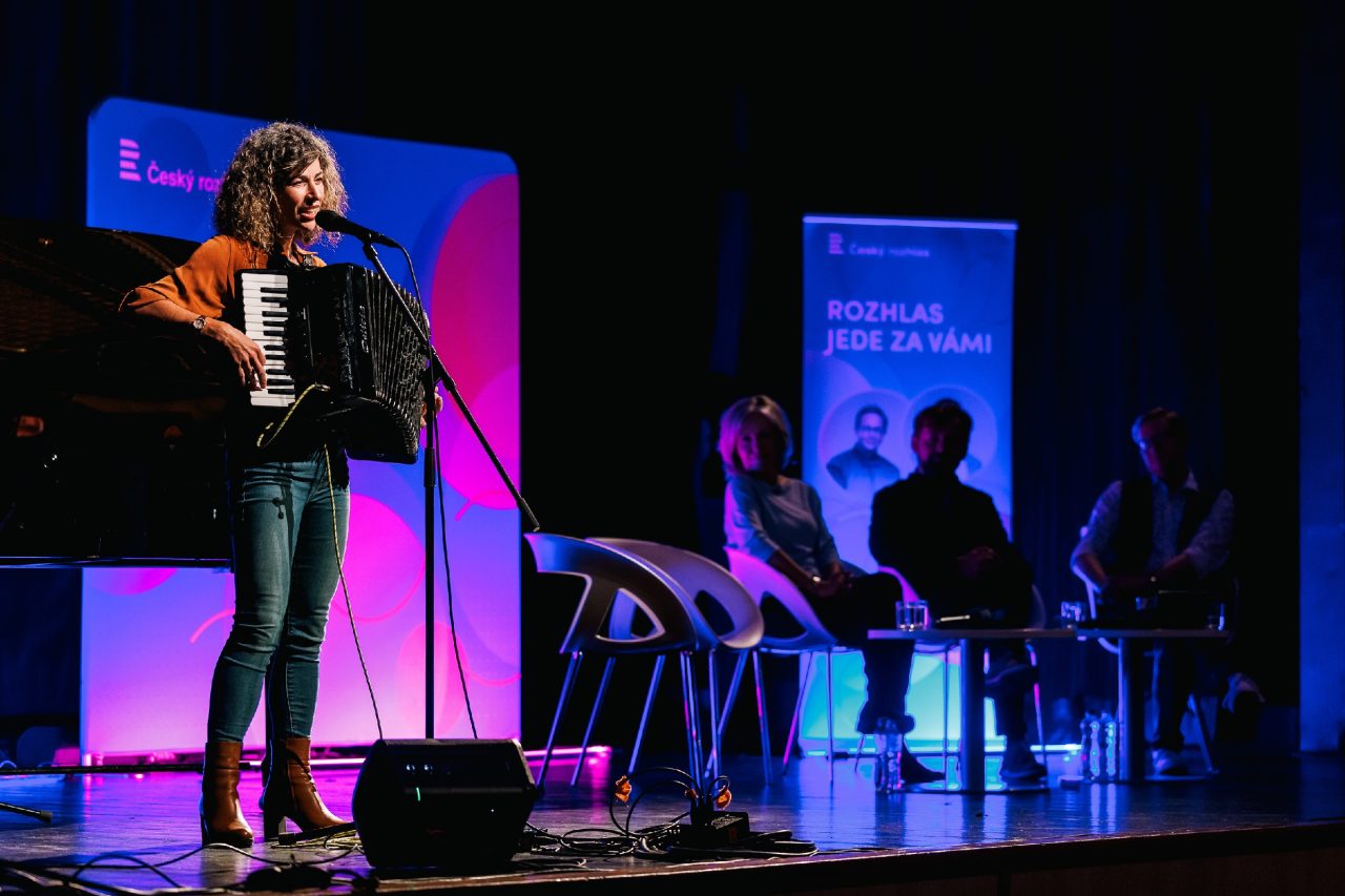 O hudební část se postarala zpěvačka a písničkářka Kaczi, která se v průběhu večera doprovodila na harmoniku, kytaru nebo klavír. „Rozhlas si pamatuju ve spojitosti s dědečkem. V neděli hrály písničky na přání a on u toho pořád brečel, jak ho to dojímalo. Tak jsem si říkala, že ten rozhlas je nějaká strašně smutná stanice.“